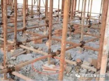 1、模板支架搭設前,未對基礎進行處理,其承載力達不到要求